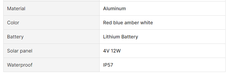 steel. Visibility is up to 1000 meters. Color: grey. Operating mode: strobe flashing .